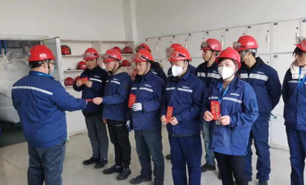 开工大吉,元气满满。正月初七上午,中伟钦州产业基地总经理胡培红为大家准备了丰厚的开门红包,送上新春开工祝福。并祝愿大家在新的一年里再接再厉、鼓足干劲,为完成新一年的各项工作打下坚实基础。
