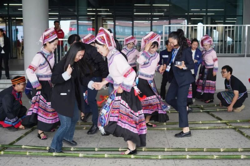 “竹有节,人有志,彼风姿凌美,塑骨气轩昂”竹竿清脆的敲打声配合着动感的音乐,在竹竿的分合间,员工们踏着轻盈的步伐翩翩起舞,并邀请现场更多同事一起加入到竹竿舞的队列中,舞出最美姿态,奏响动听乐章,用舞动的旋律书写中伟人热情活泼、积极向上的精神风貌。