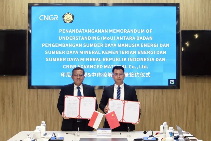 在与会人员的共同见证下,刘一与Prahoro Yulijanto Nurtjahyo分别代表中伟和印尼能矿部签署《合作谅解备忘录》。