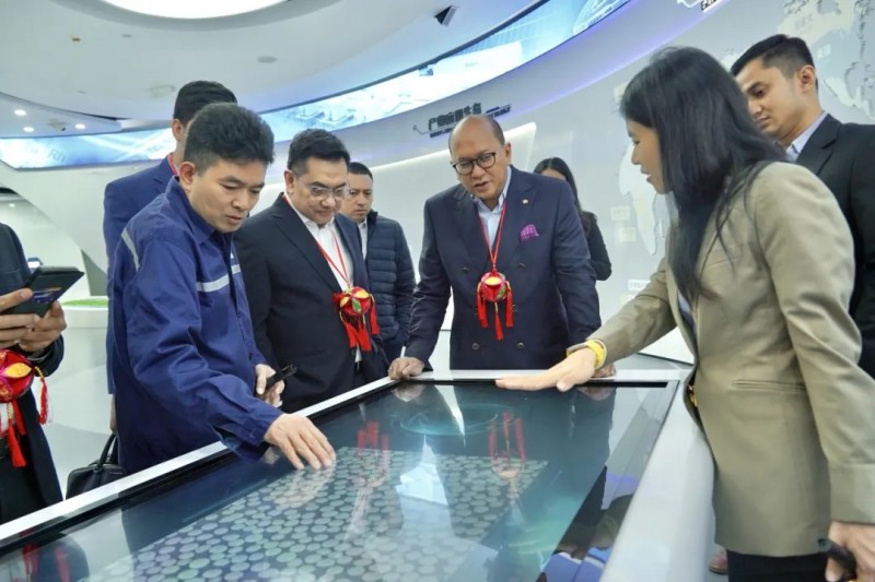在中伟科技馆,Rosan Perkasa Roeslani部长一行参观了中伟发展历程、产业循环体系、产业一体化、生产研发体系等展区,详细了解中伟的产业布局、技术优势及未来发展规划等情况。