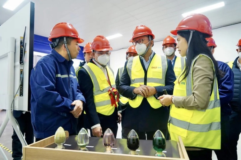 工作人员向部长一行展示了高倍率的中伟产品电镜图,Rosan Perkasa Roeslani部长在近距离观看由印尼镍资源生产的高性能新能源材料后,对中伟快速开发与量产的技术服务能力及产业化应用能力表示赞叹。