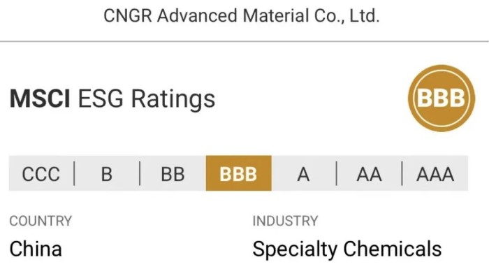 作为一家负责任的新能源材料领军企业,中伟股份一如既往地重视并推进可持续发展工作,2024年ESG收获多项成果——MSCI ESG评级再度提升,迈入行业中上游水平,入选“《财富》中国ESG影响力榜”“中国绿色电力(绿证)消费TOP100企业”“标普全球《可持续发展年鉴(中国版)2024》”,获评标普全球企业可持续发展评估(CSA)“行业最佳进步企业”。