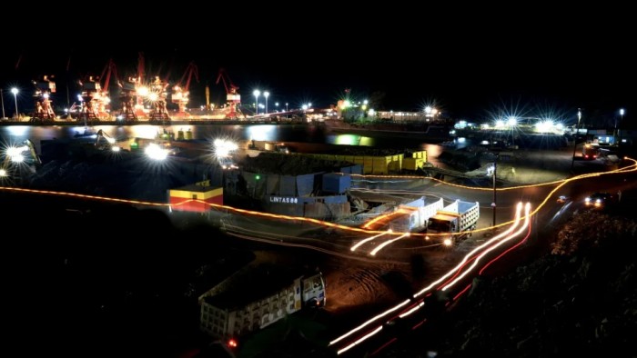 SAH码头是中伟北莫罗瓦利产业基地原料及产品进出的中枢港,即使夜间也常常灯火通明。恰逢基地出货量破万金吨的里程碑时刻,我用慢快门记录下作业过程中挖掘机、自卸车车灯勾勒出的一道道美丽弧线,这些彩色线条与远处的码头灯光交相辉映,共同照亮了北莫罗瓦利基地的不眠之夜……