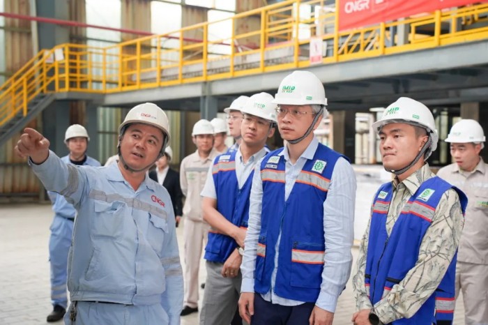调研过程中,王鲁彤大使先后来到中伟鼎兴与中青新能源的生产车间、核心生产线及技术作业区,实地察看生产流程、设备运行及产品产出情况,对企业的生产管理水平和技术落地成果给予肯定。现场交流中,王鲁彤大使重点询问了企业当前经营状况、产能规模、市场布局及在印尼的发展规划,关切了解企业在本地化用工、供应链协同等方面的实践,并向一线员工表达了慰问。