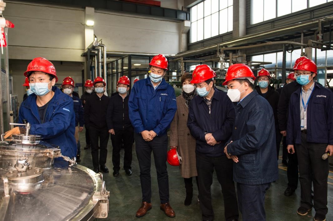 胡衡华一行先后参观了园区办公大楼、中试车间、三元二车间,详细了解了公司发展规划等相关内容,仔细询问了中伟在疫情期间的产能、经营情况。对于中伟目前复工率接近100%,园区0感染、0减员、0停产的阶段性成果,胡衡华表示了充分肯定。