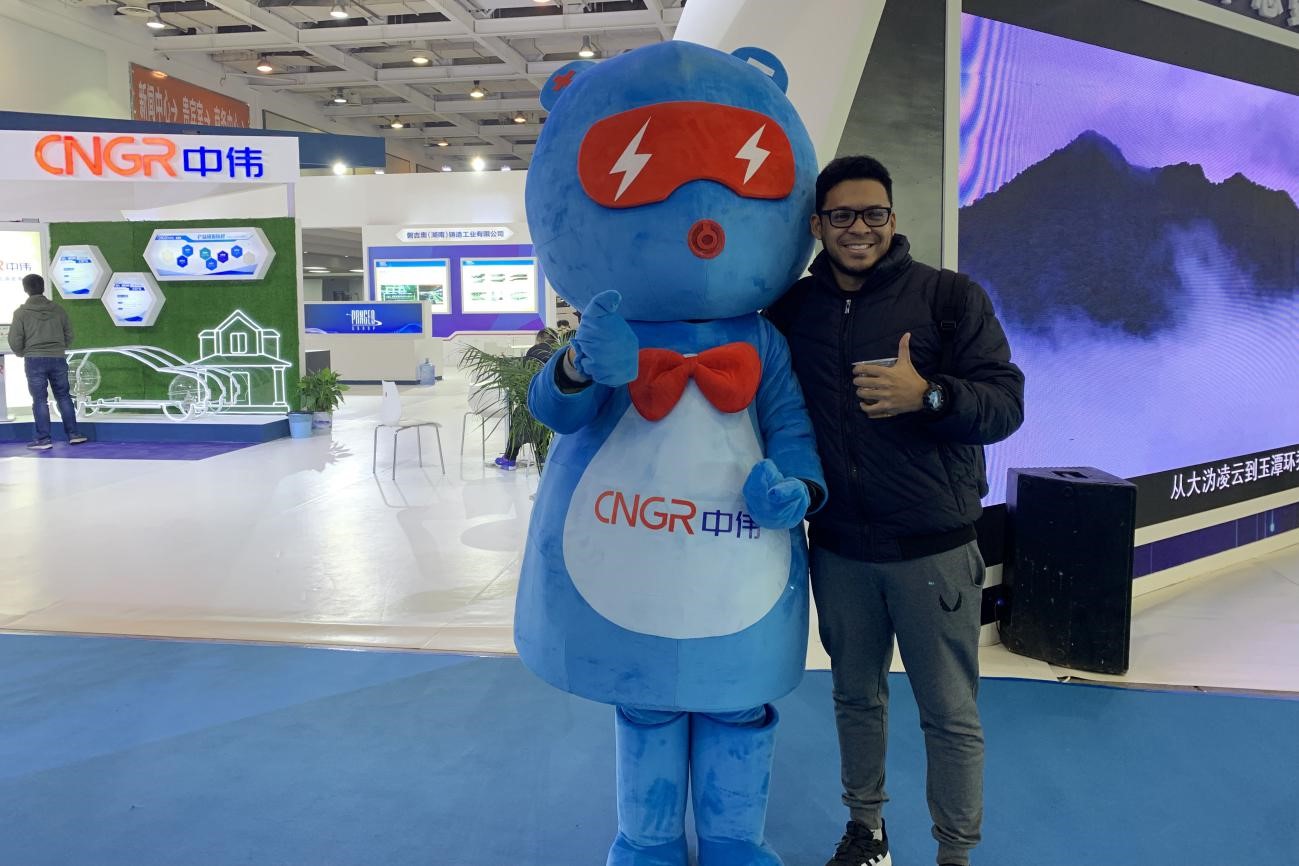 参展观众与中伟新材料吉祥物“锂电宝宝”合影