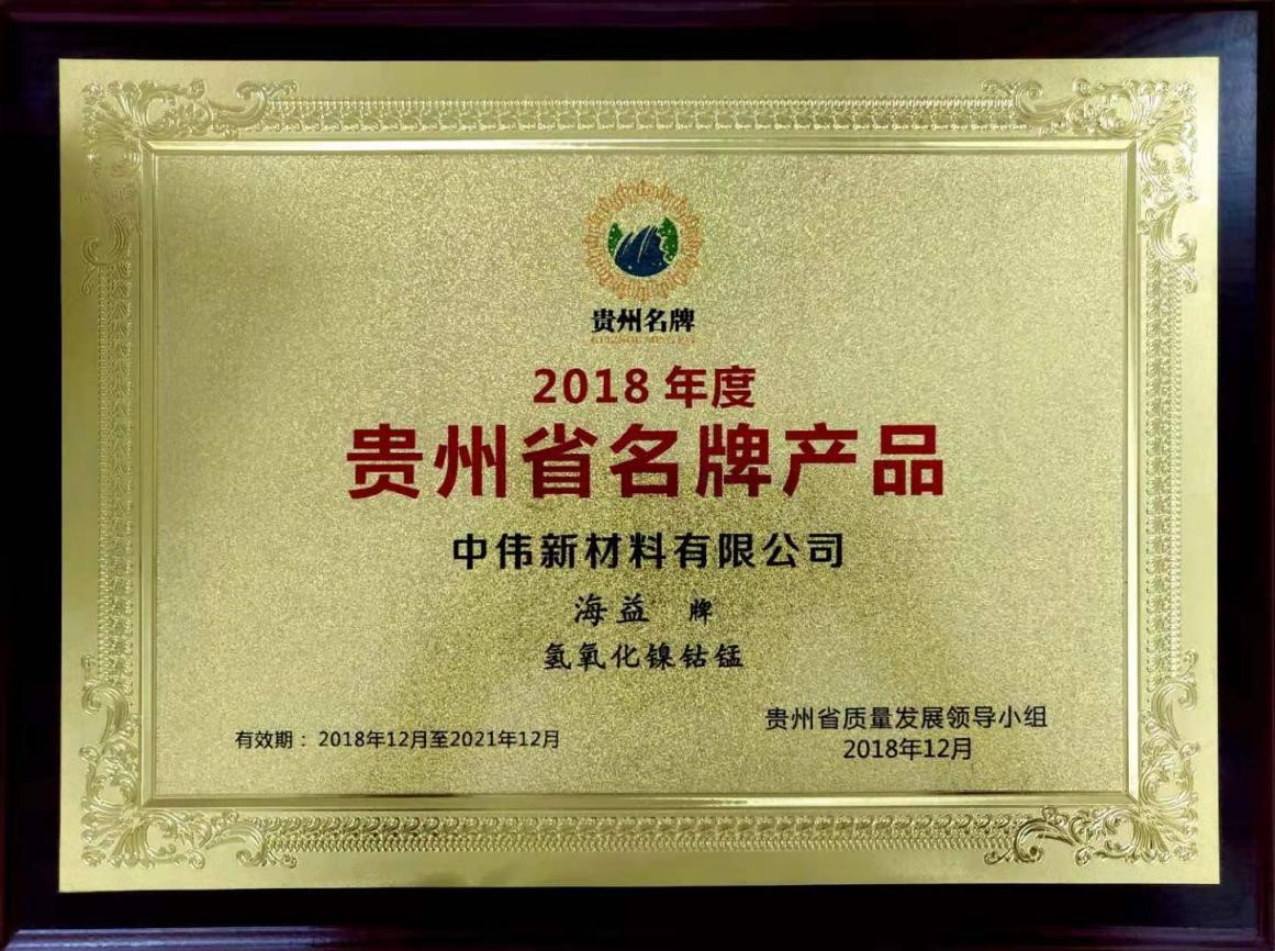 9月5日,在贵州铜仁市,当地质量发展领导小组对荣获2018年度“贵州省名牌产品”称号企业进行授牌。颁奖仪式上,中伟新材料凭借海益牌氢氧化镍钴锰产品获此殊荣,这是对企业产品的高度肯定。