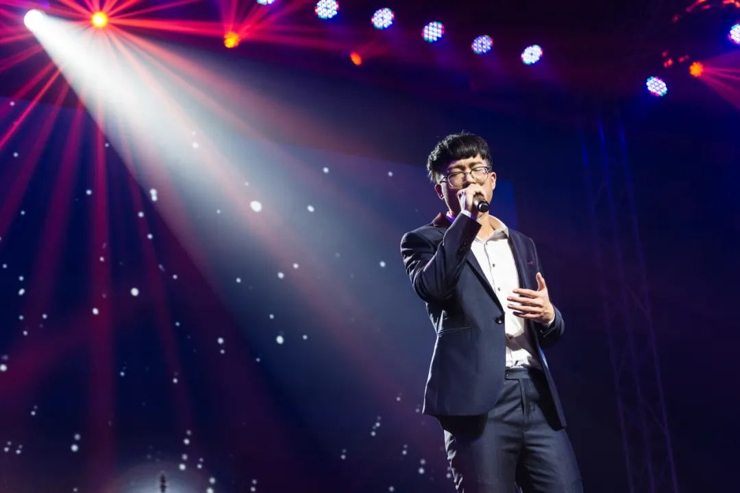 在观看完第一位选手的VCR后,第一轮较量正式开始,来自新材料研究院的杨轶涵率先打响“第一枪”,用一首《蝴蝶泉边》展现了自己的青春活力。紧接着,来自中部产业基地四钴一车间,号称“中伟萧敬腾”的彭亚飞头戴草帽、身着“沙滩装”,用一首《海芋恋》将观众们带回到悠长夏日的海边;连续两年入围决赛、来自西部产业基地的刘刚献唱《陷阱》,展现了车间主任的“铁汉柔情”;来自汉华京电的刘振南上演《饿狼传说》,以独特的嗓音和魅力将那个属于“四大天王”的时代再度展现在了观众眼前。