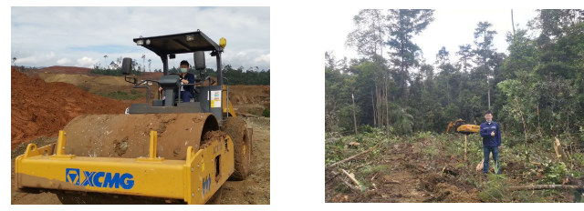 刚开始没人干活,他便学会了开压路机;为了给山地开荒,确认项目场地面积,那段时间常常和同事们出入原始森林,沿着山里的小溪爬进去做测量和放点,深度体验了一把“荒野求生”。