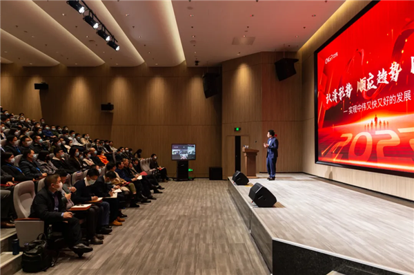 大会伊始,中伟股份财务中心总经理朱宗元以“追梦路上 行稳致远”为主题,向全体参会人员详细汇报了2021年公司的经营概况,并对2022年的整体预算方案进行了介绍。他表示,在过去的一年中,中伟生产经营主要指标再创新高,发展态势持续向好。面对行业的激烈竞争,公司充分彰显了发展的韧性与潜力,很好地顺应了产业发展趋势,实现了经营的稳步前行。随后,邓伟明以“认清形势、顺应趋势、同心协力,实现中伟又好又快发展”为主题发表了重要讲话,分别就当前中伟的发展形势、行业趋势进行了深度剖析与分享,并确定了“国际化、多元化、精益化”为2022年度中伟全年发展主题。
