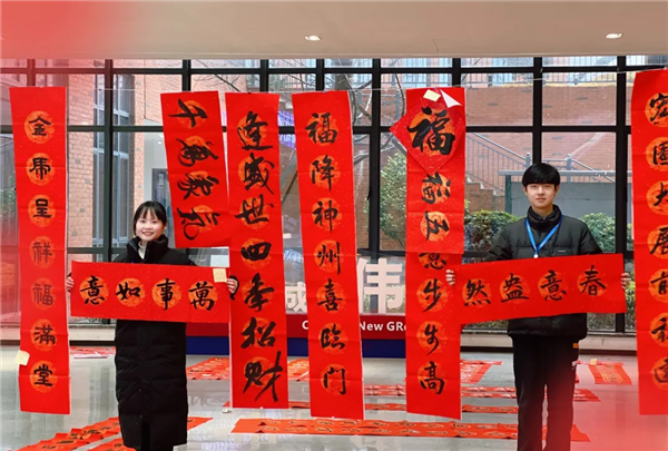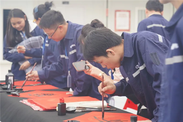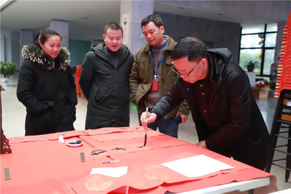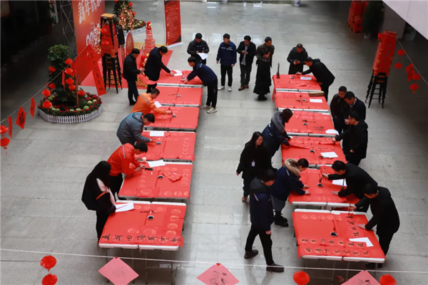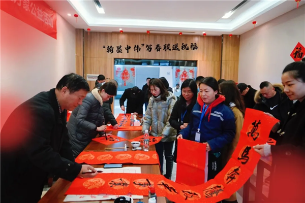 次日,来自宁乡市书法家协会的书法大家们受邀来到中部产业基地,参加“翰墨中伟”写春联送祝福活动。活动现场,书法家们用红纸黑字、笔墨纸砚传递着新春的温暖与祝福。