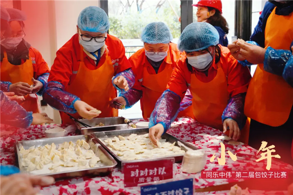 所有人齐心协力、分工明确,不一会,饺子盘就摆满了活动现场。最后,由生产运营中心和质量管理中心组成的“阳光队”,获得此次包饺子大赛的冠军。