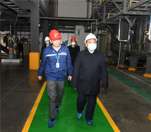 林冠一行实地走访了南部产业基地,通过听取介绍和交流考察等方式,详细了解了南部产业基地项目整体规模、建成产值、市场占比、原材料来源、产品研发、人员规模及项目建设进展等情况。在三元一车间,林冠仔细查看了车间建设情况,听取了胡培红对车间工程建设进度等汇报后,充分肯定了建设成效,并就项目建设推进中遇到的问题作出精细化指导,强调要坚持“政策为大、项目为王、环境为本、创新为要”。