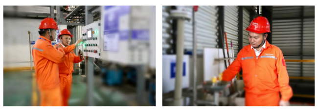 生产部:像钉子一样扎根岗位,“咬定”生产目标不放松,保持“生产高温”劲头。尽管衣衫湿透,奋战生产一线的员工手上依旧忙碌不停。做记录、取样、查看设备运转情况。环境温度高,但他们的士气更高;生产任务重,但是他们的责任感更重,他们用实际行动诠释了中伟人的敬业与担当。