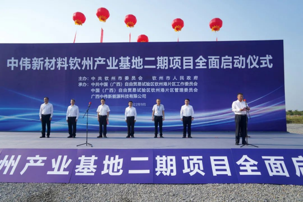 9月23日,中伟钦州产业基地二期项目开工仪式顺利举行。钦州市委副书记、市长、党组书记、中国(广西)自贸区钦州港片区管委会主任王雄昌,市委常委、中国(广西)自贸区钦州港片区管委会常务副主任杨斌,自治区地矿局副局长、广西工业振兴特派员驻钦州工作队长刘胜友,中国(广西)自贸区钦州港片区管委副主任李从佳,中国(广西)自贸区钦州港片区管委副主任莫福文,副市长谢立品,钦州产业基地总经理胡培红等领导出席仪式。开工仪式由市委常委、常务副市长林海波主持。