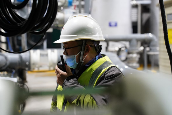 在产线设计上,得益于自身多年在前驱体材料研发制造的经验,中伟磷酸铁车间运用DCS全自动化产线,实现除投料外的全自动化设计,有效防控异物、实现防呆防错,保证产品的一致性与品质。在降碳环保方面,产线采用行业内先进的余热回收物料烘干设备,节能减碳;废水95%实现内部循环,废水中磷、氮化合物全部资源化利用为复合肥料,变废为宝。